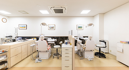 歯科用吸引装置等を備え、歯の切削時等に飛散する細かな物質を吸収できる環境を整えています。